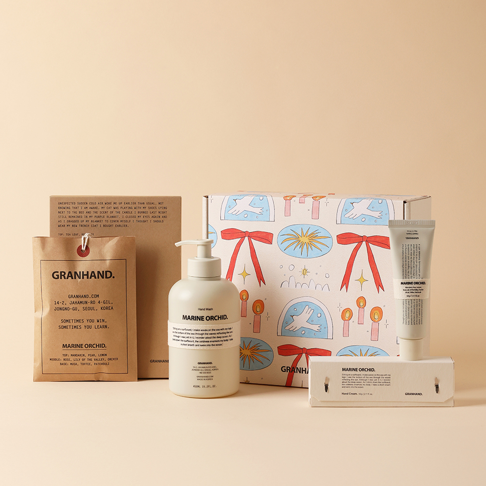 올 설에는 응원의 마음을 향기로 전달해 보세요! 오늘 뿌린 향 하나가 하루의 기분을 결정하듯, 향기는 새 출발을 위한 새로운 마인드셋에 훌륭한 역할을 합니다. 설 명절을 위한 특별한 패키지도 준비했으니 그랑핸드 공식몰 선물하기에서도, 카카오 선물하기에서도 언제든지 소중한 사람들에게 마음을 선물하세요.